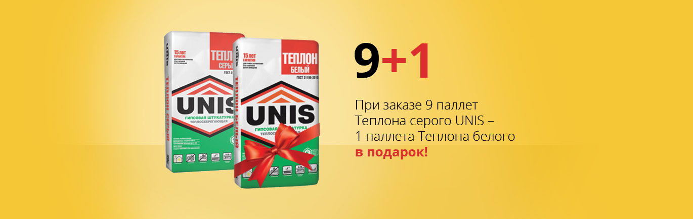 При заказе 9 паллет теплона серого (30 кг) от UNIS, клиент получает в подарок 1 паллету теплона белого 30 кг